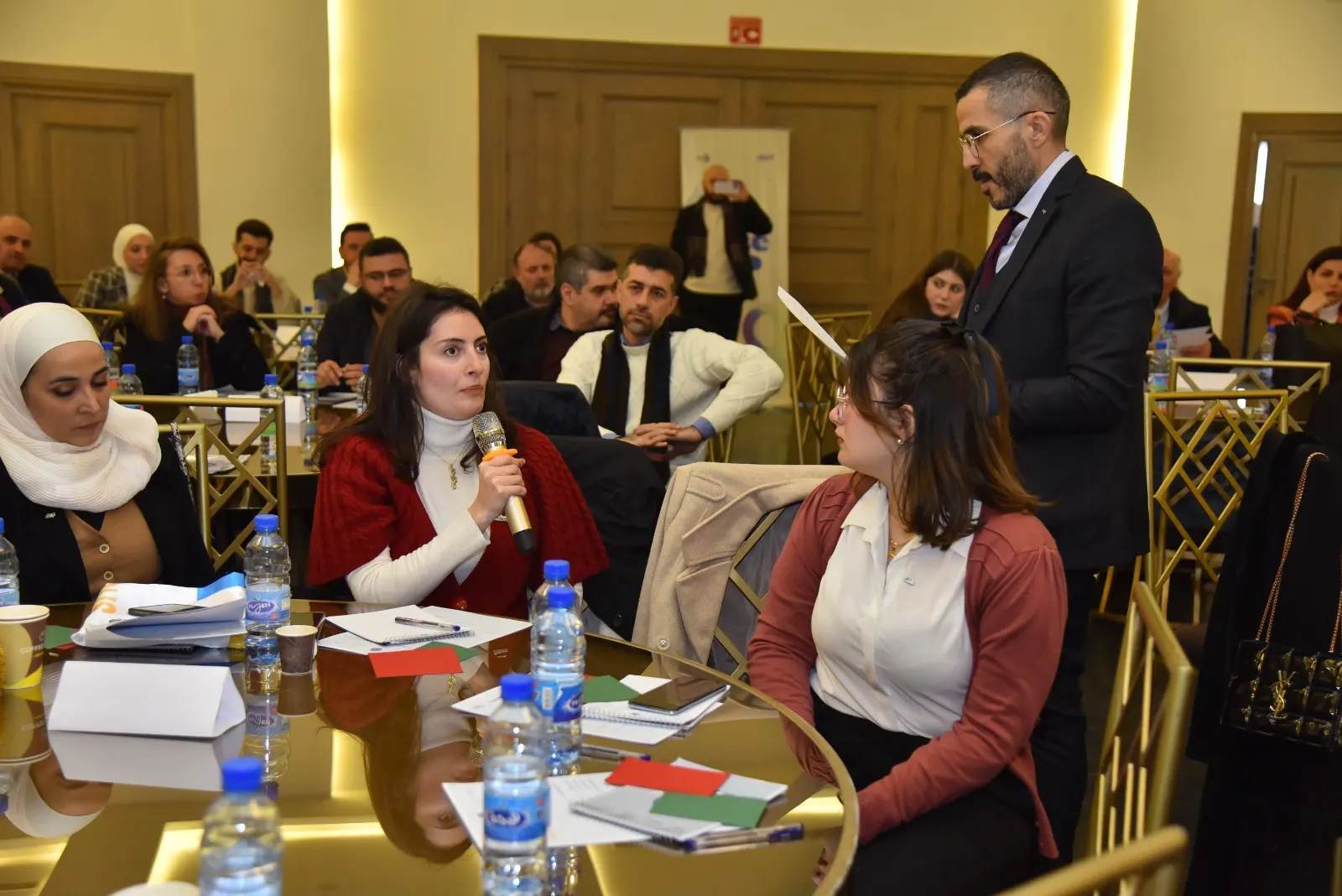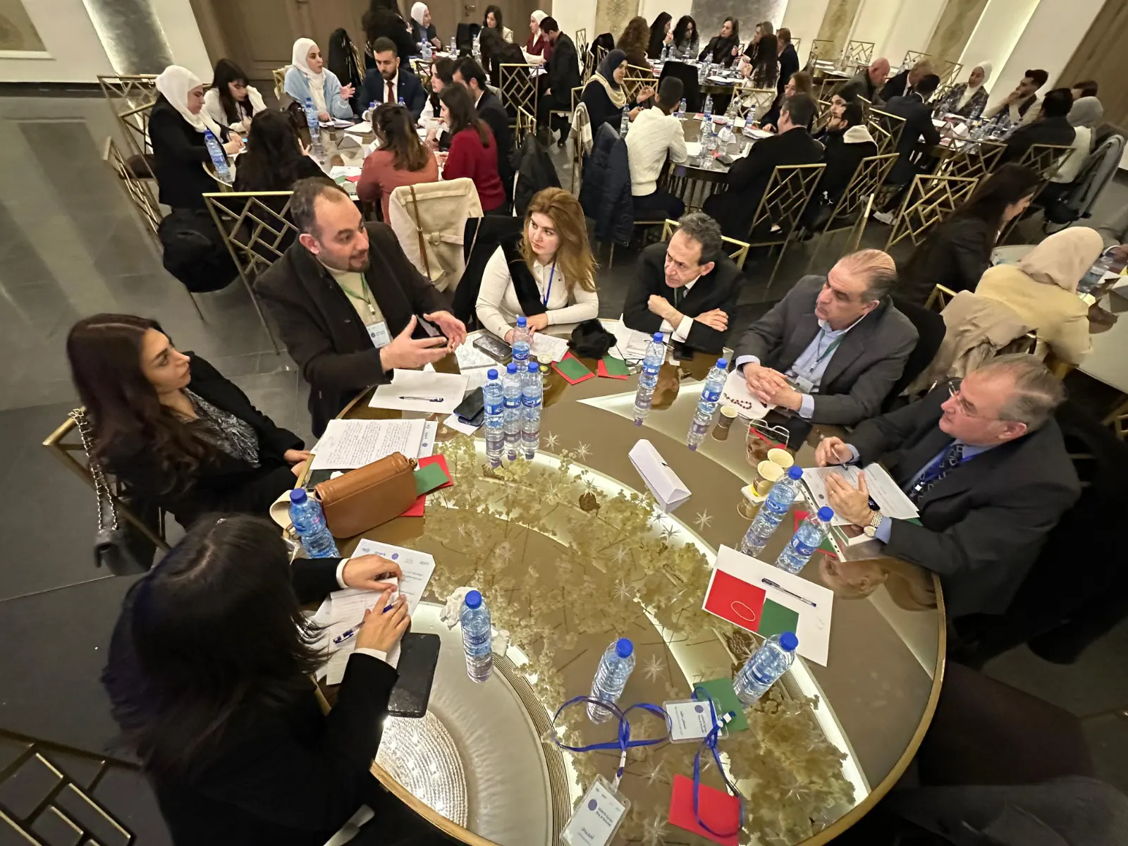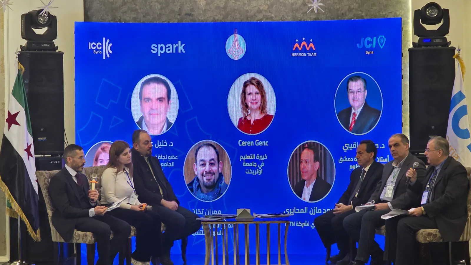 A second session, titled “Bridging the Gap: Higher Education and the Labor Market in Rebuilding Syria,” featured a distinguished panel of speakers who examined the issue from multiple perspectives. Dr. Mohammad Maher Kabakeebi discussed the future of higher education and its relationship with the private sector, while education expert Ceren Genç from Utrecht University presented international best practices in education. Dr. Khalil Ajami emphasized the role of technology in modernizing educational systems, and Dr. Mohammad Mazen Al-Mshsyri, Acting CEO of MTN, highlighted the importance of private sector engagement in supporting education. Mehran Takhan, CEO of the Syrian Development Academy, addressed ways to enhance cooperation between academic institutions and employers, while Architect Maya Al-Hamoud focused on the importance of inclusive educational practices and broader support for higher education.